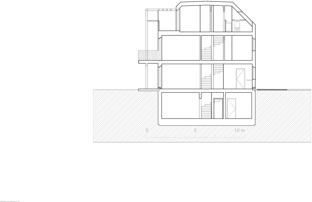 Das Projekt befindet sich am Stadtrand der Donaustadt, wo die Bebauung bereits ausdünnt und man die direkte Nähe zur Natur sucht. Insgesamt fünf Häuser mit hohem Wohnwert liegen beiderseits einer wenig befahrenen Straße. Konzipiert sind die Häuser als architektonischer Mittler zwischen dem öffentlichen Straßenraum und der dahinterliegenden Kleinsiedlung. Die Erschließung sieht ein kompaktes zentrales Wohnstiegenhaus vor, das kurze Wege und eine optimale Situierung der Zimmer ermöglicht. Die Reihenhausanlage wird in Holzriegelbauweise hergestellt.